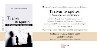Παρουσίαση βιβλίου "Τι είναι το κράτος; Τι δημοκρατία χρειαζόμαστε;" του Δημήτρη Καλτσώνη (Σάββατο, 1/10/2016, 7:30 μμ στο Wall Press Cafe)